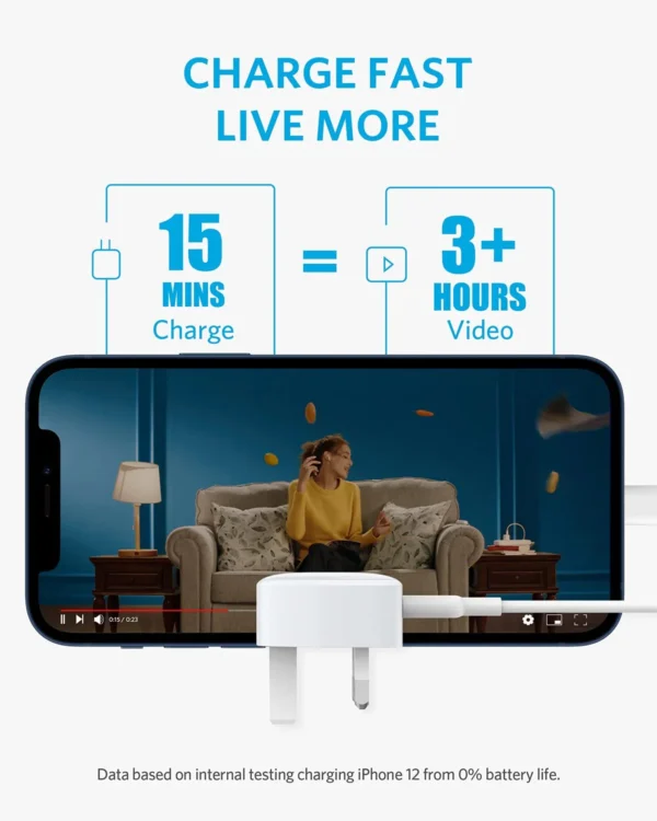 Anker Nano is designed with a 20W output to match the max input of the iPhone 12, so you can provide exactly as much power as your iPhone needs. Charge iPhone 11 to 53% in just 30 minutes that’s up to 3X— faster than with an original 5W charger.