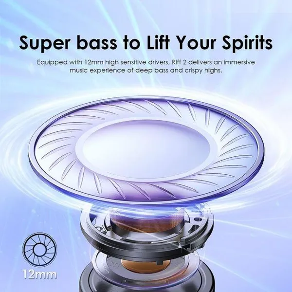 Equipped with 12mm high sensitive drivers, Riff 2 allows you to enjoy exceptional sound quality while delivering an immersive music experience of deep bass and crispy highs.